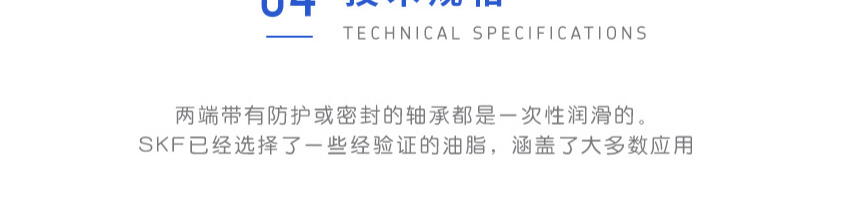 SKF深溝球軸承是一種儀器器件,有開式、雙面帶密封圈,帶密封的軸承在外圈上開有可裝密封圈或防塵蓋的溝槽,適用于高轉速甚至極高轉速的運行。